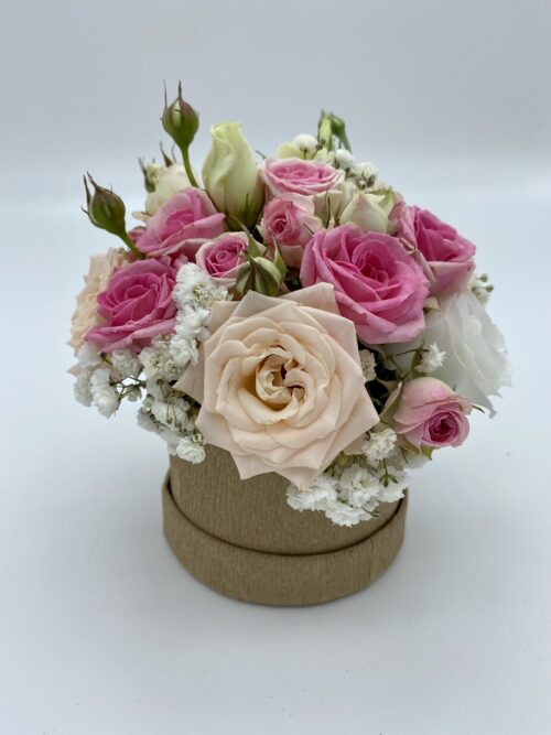 Cestino piccolo rosa e bianco di fiori freschi